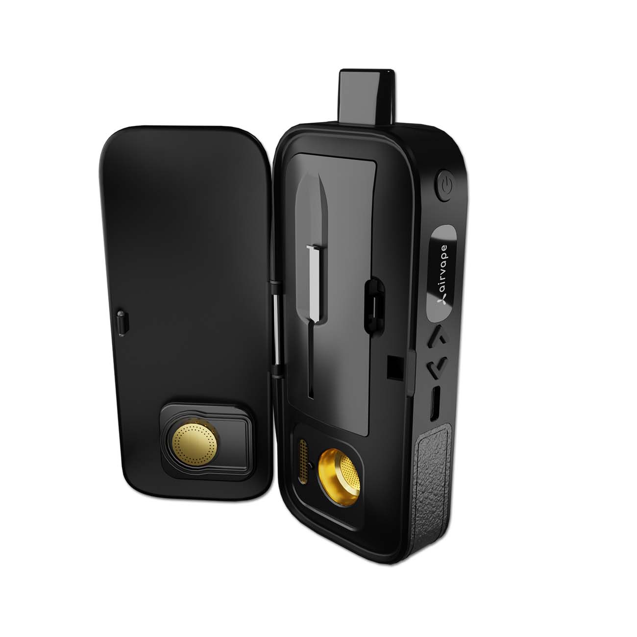The LEGACY PRO from AirVape is a hybrid vaporizer that is suitable for herbs as well as concentrates. This vaporizer uses hybrid heating technology, i.e. both: convection heat (heating by heated air flow) and conduction heat (heating of the golden heating chamber). Herbs and extracts are vaporized more evenly and therefore more efficiently, while the heating process is faster. It takes less than 15 seconds to reach the right temperature, which is indicated by a vibration signal.
