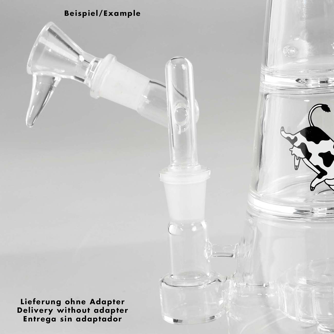 As there is no kick hole, the herb bowl has a longer handle for a comfortable lift-off. For the funnel-shaped bowl, we recommend screens with a small diameter, for example article number S10 or 440528. The funny bong made of the best borosilicate glass is easy to hold and stable. If you replace the bowl with a banger with SG 14, it is also very suitable as a dab rig.