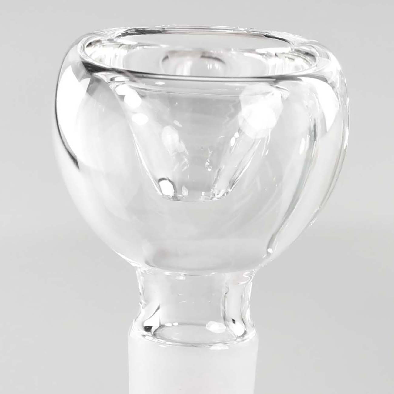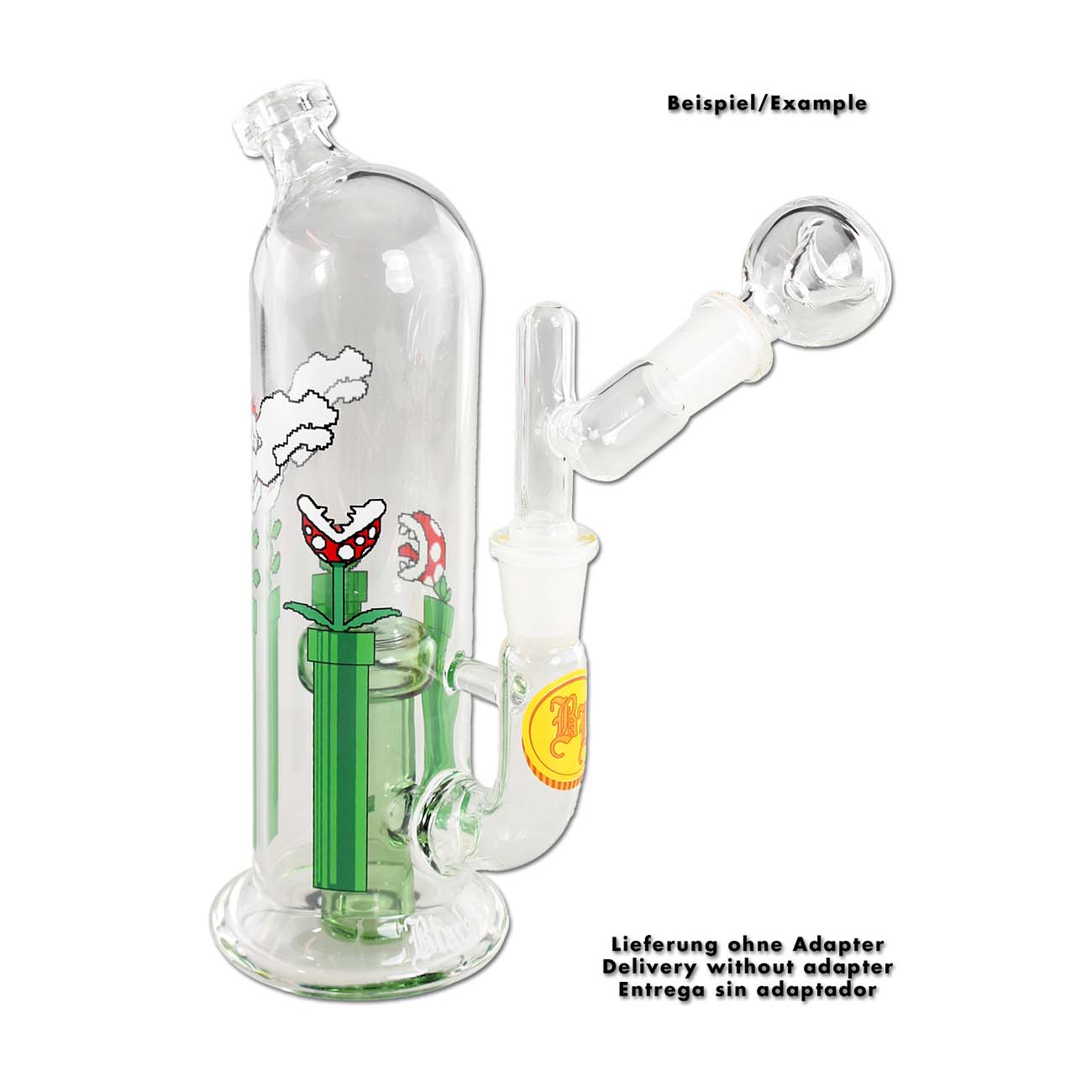 Unfortunately, the distance between the bowl and mouthpiece is a little tight, so we recommend using an adapter, for example item number 071827, to prevent collisions when hitting the bong. No screen is required for the bowl, but if you prefer to use one, we recommend bowl strainers with the smallest diameter, for example item number 440528 or 440547. If you replace the bowl with a banger, the small glass pipe is also very suitable for dabbing.
