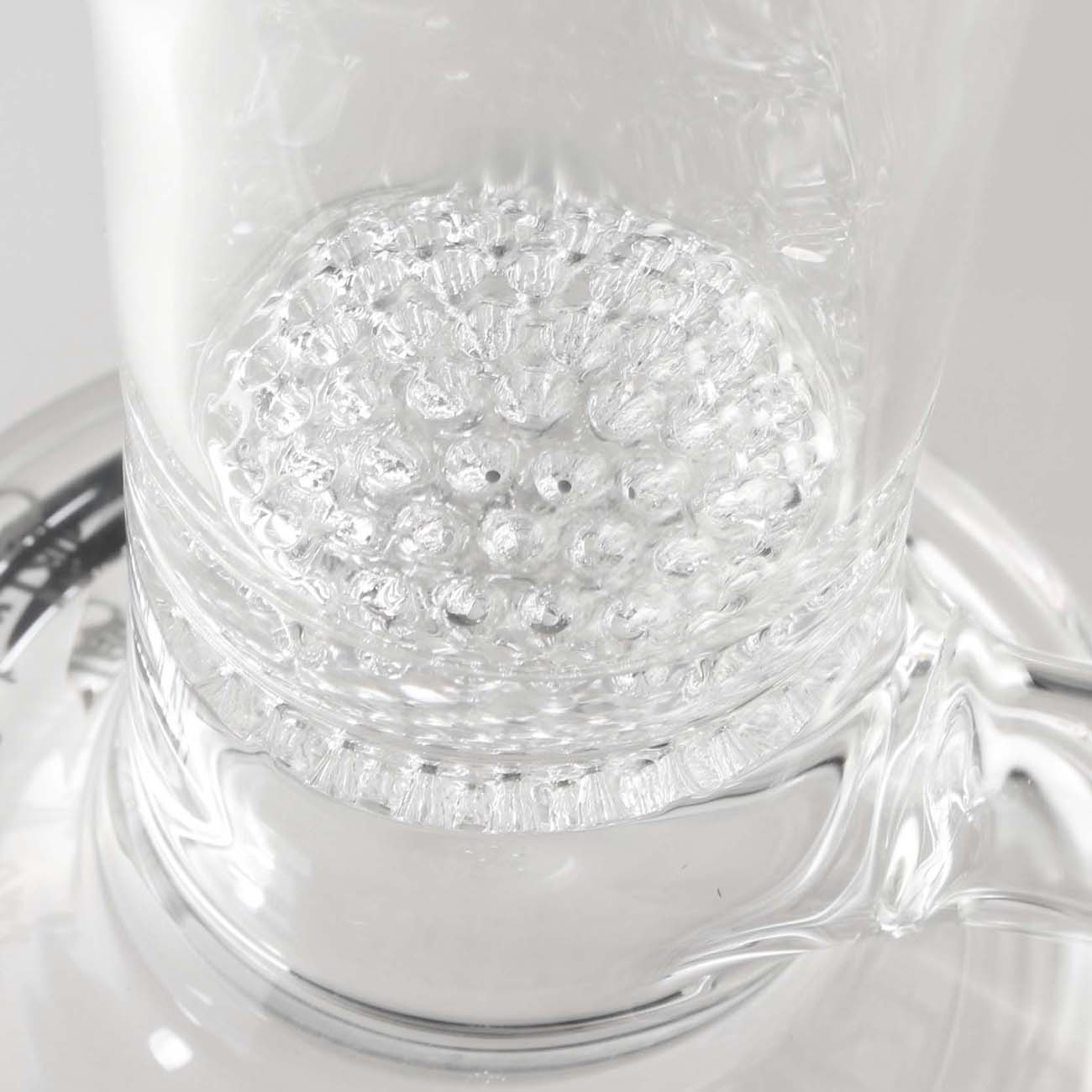 This easy-to-grip bong by Black Leaf® promises interesting swirls of water and smoke, as well as a powerful hit! This is due to the unusual double HoneyComb diffuser, which creates countless air and water bubbles, and the vertical Swiss percolator, which directs the smoke in a different direction. This cools the smoke down and filters it, making it less scratchy when inhaled.