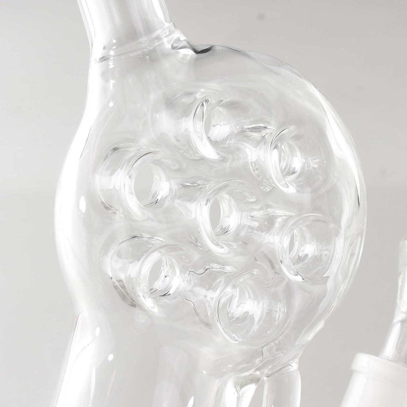 The borosilicate glass bong is equipped with a lift-off bowl for herbs(there is no kick hole). A separate screen is not necessary as one is already integrated. This bong is also absolutely perfect for dabbing. Simply replace the bowl with a banger with SG 19.