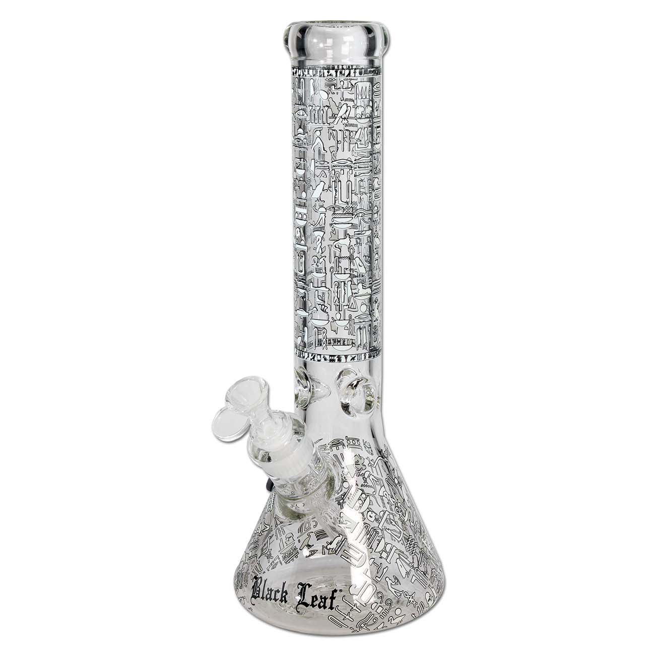 Black Leaf Hieroglyphs Beaker Bong Ice Glow 7mm