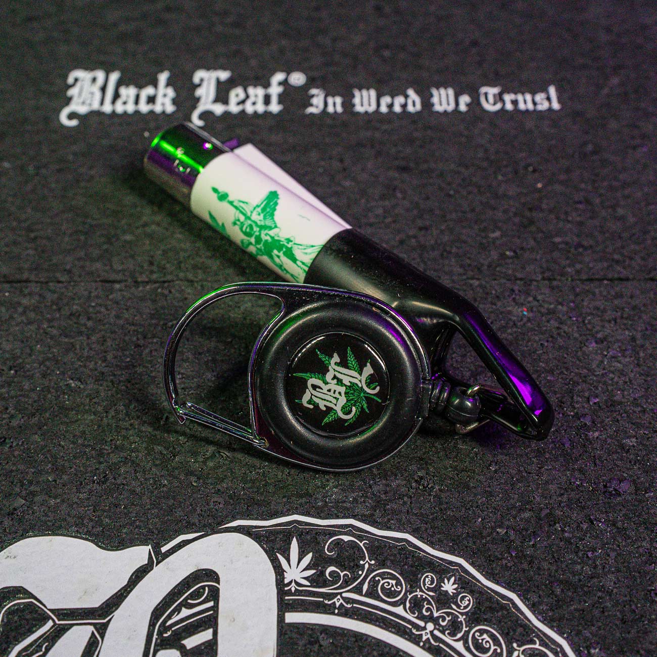 Never be without a lighter again - stylish holder for lighters with two clip options and a long cord like a ski pass holder - for greater freedom of movement. This way, you never have to let go of the lighter! With a cool Black Leaf® logo.