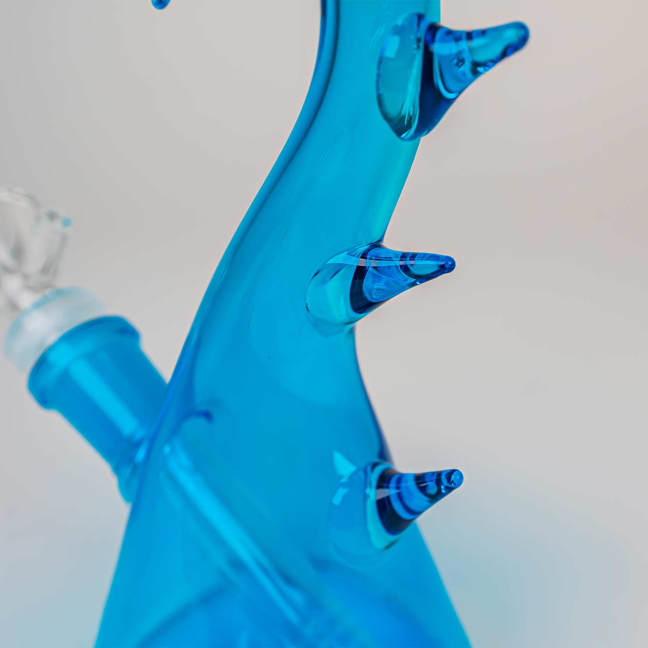 Incidentally, the cute little bong features a plug-in system with a diffuser-slit chillum into which you can insert either the bowl with lift-off handle or the banger. The diffuser slits create a gentle bubbling effect inside the dragon’s belly, cooling and filtering the hot dragon’s breath.