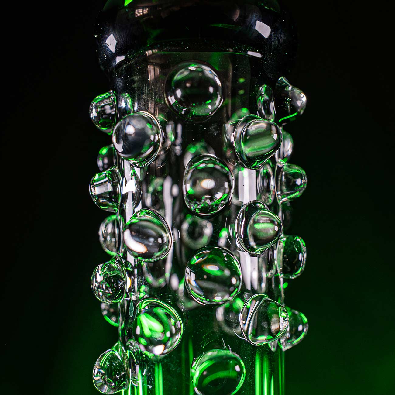 The Mrs Bongbastic Bong from Black Leaf is like her bloke simply BONGBASTIC, but a little more dainty with curves at the right place thanks to her piston-shaped figure. Mrs Bongbastic has hefty 650mm hight and is robust 5mm strong. Three dome percolators and an additional diffuser in the adapter bring water and air inside the pipe to bubble and swirl. Due to this smoke cooling and filtering, the hit tastes smooth and aromatic despite the huge dimensions. The herb bowl has a respectively large intake hole as well as a roll-stop handle. And then there is an ice chamber and kickhole with rubber plug.