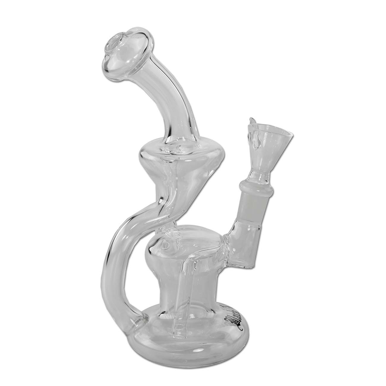 Delightfully small but very stable glass bubbler from Black Leaf® with recycle function. In the process, the bong water is drawn through the tube into another chamber and then flows back into the main chamber. During the return flow, the water is enriched with fresh oxygen each time, so it is recycled. And at the same time, unwanted by-products of the smoke settle on the pipe wall.