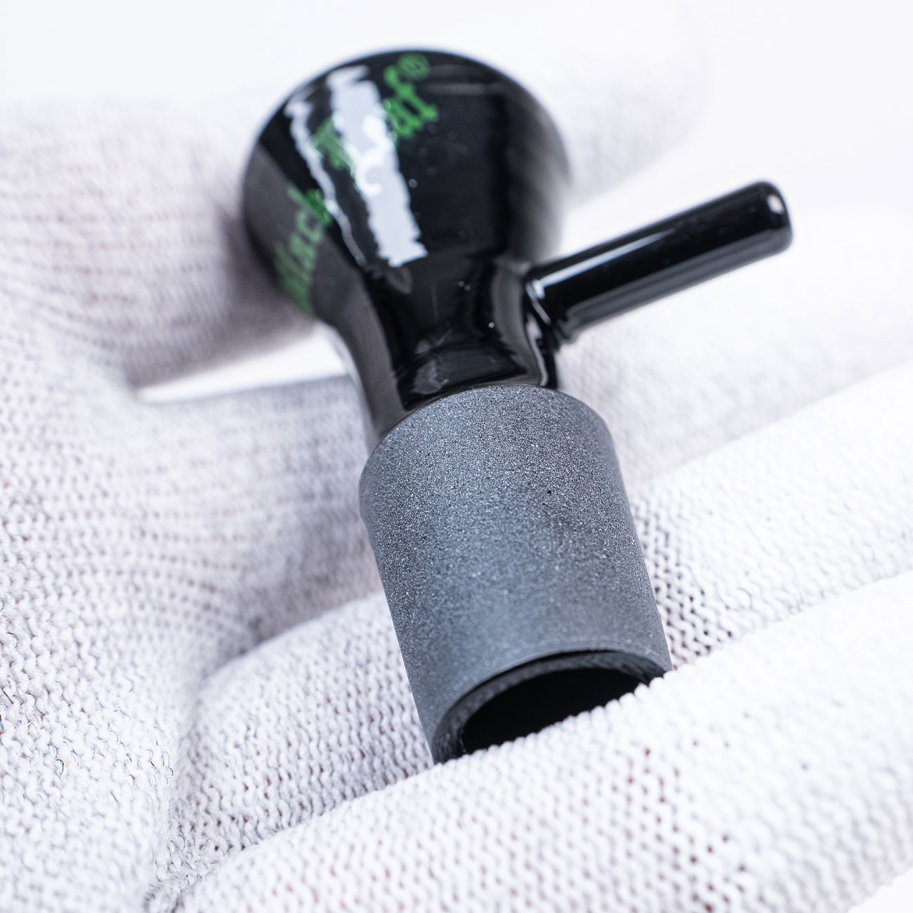 Black Leaf® bowl for herbs made from fine black glass for the Grand Story of Black Leaf® bongs with item numbers 2618221 and 2618222. With lift-off handle which, of course, also prevents the bowl from rolling away (if placed on the table).
