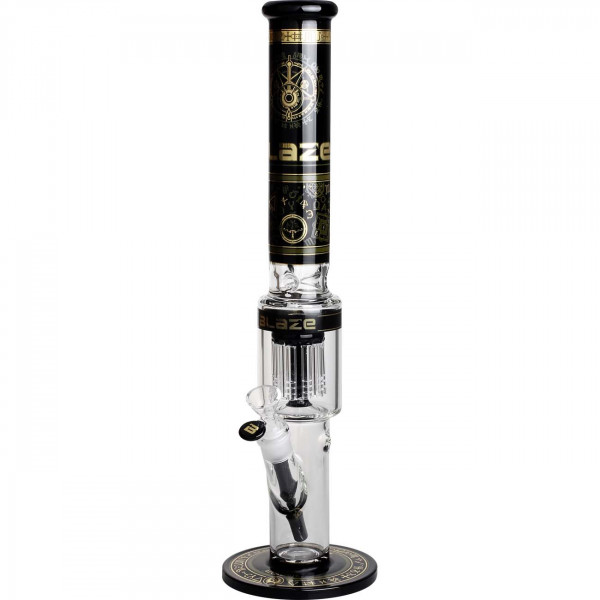 The extraordinary, handmade ice bong Alchemy of our premium brand Blaze Glass enchants with its bright metallic print on classy black borosilicate glass.