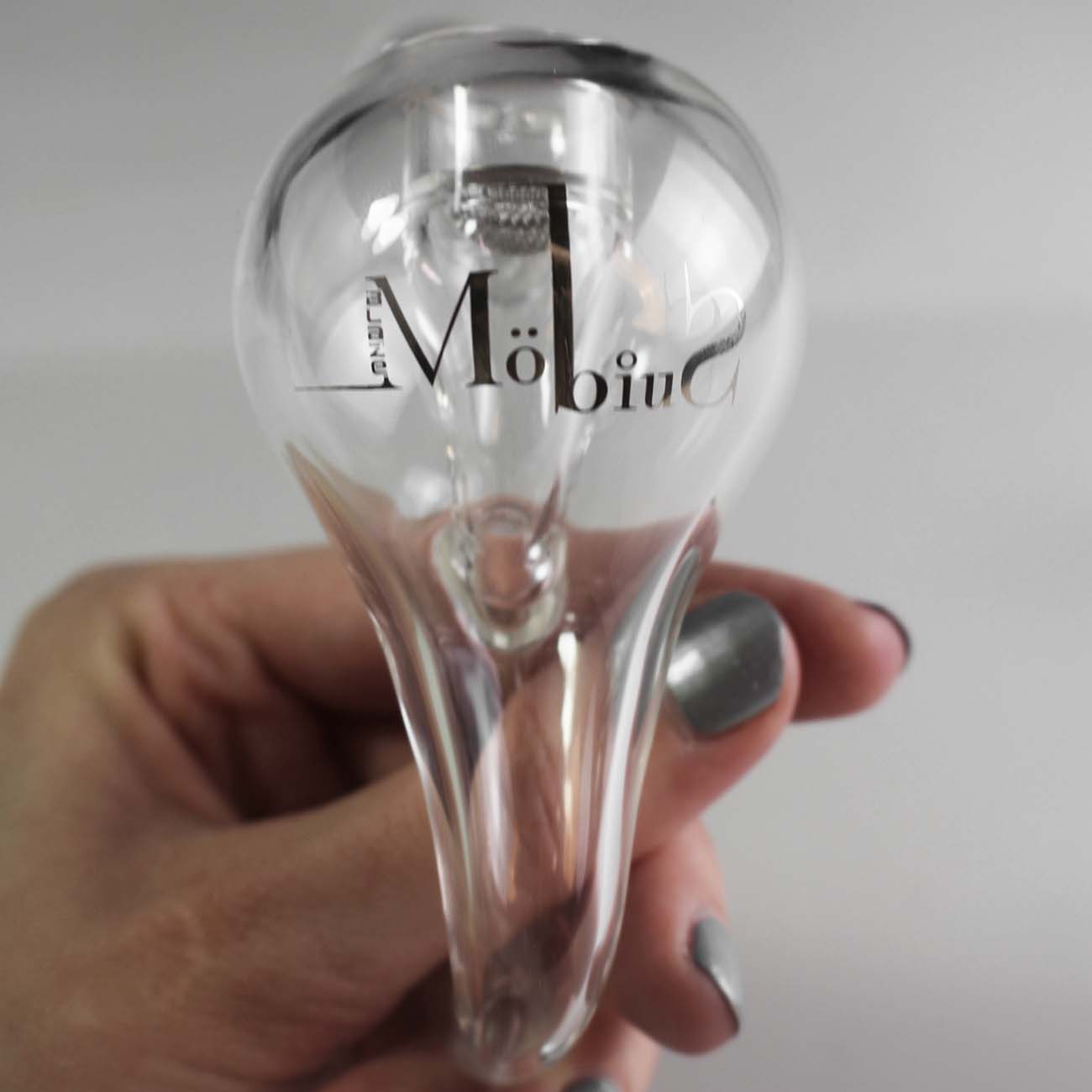 Interesting BLAZE® MÖBIUS hand pipe made from the finest borosilicate glass, where the smoke must first pass through the famous Möbius loop before being drawn into the stem through the poured water. This longer smoke path cools the smoke accordingly and provides a milder smoking experience.