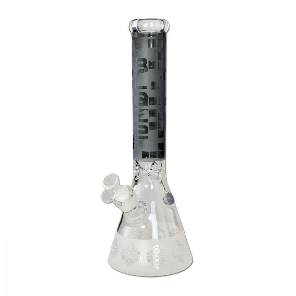 The ice bong from BLAZE GLASS® is heavy and robust because it is made from 5mm thick glass tubing, and it has a bi-stable grind. Nothing is going to knock her off her feet so fast. In addition, the classic beaker bong scores with great, sandblasted patterns even on the bong base.