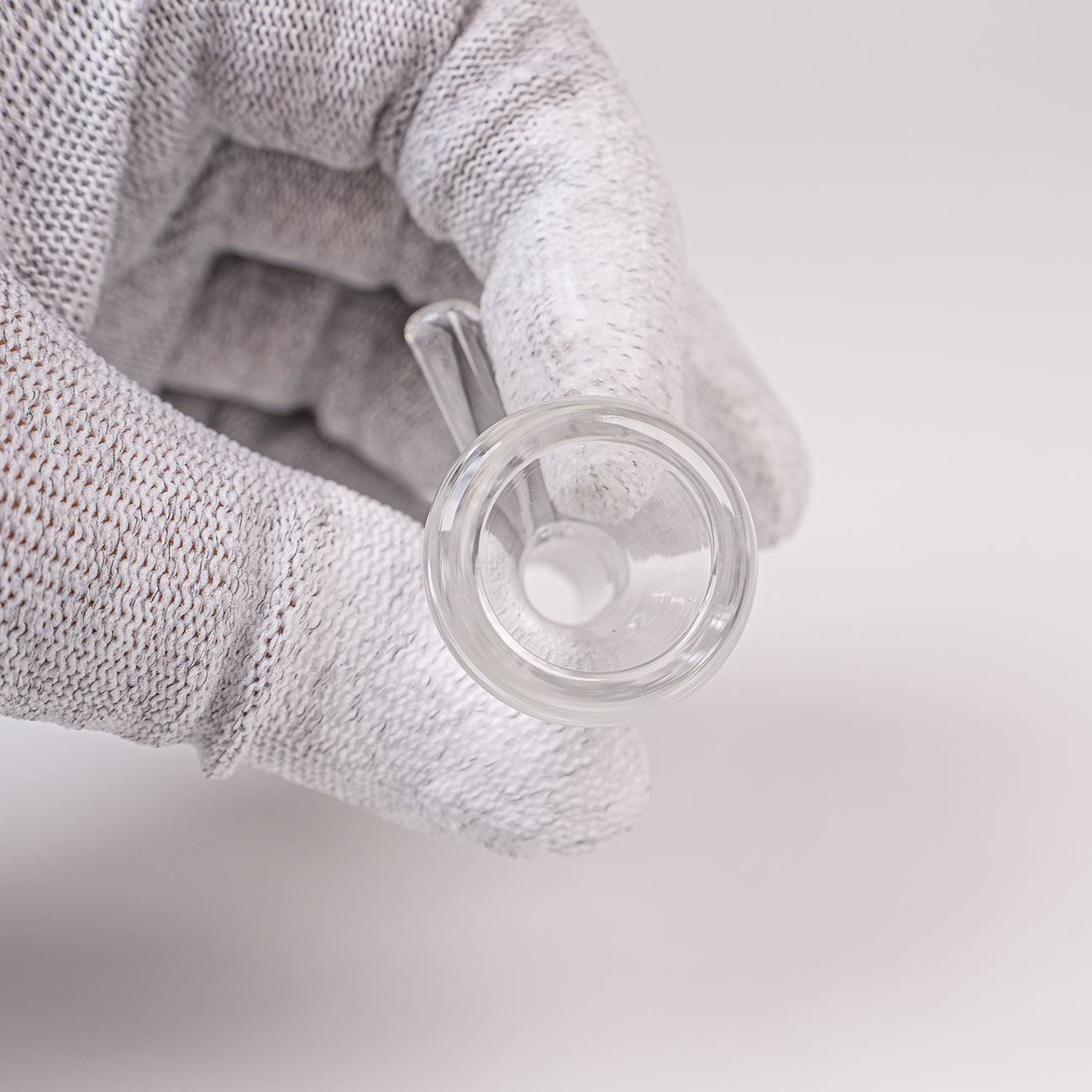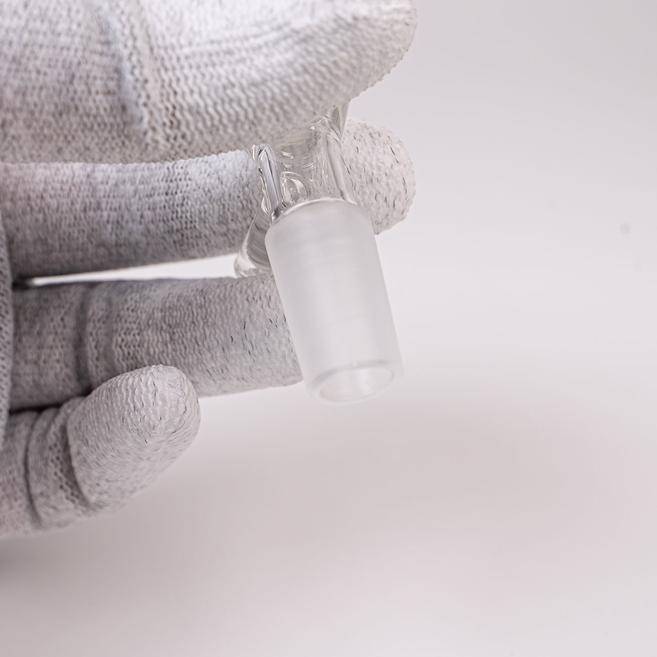 This clear borosilicate glass bowl is designed for the BLAZE® Mix+Match 2.0 series (spare part for bongs with item numbers 2618208 and 2618210). It also fits, of course, into other bongs, chillums, and adapters that have a 14mm female ground.