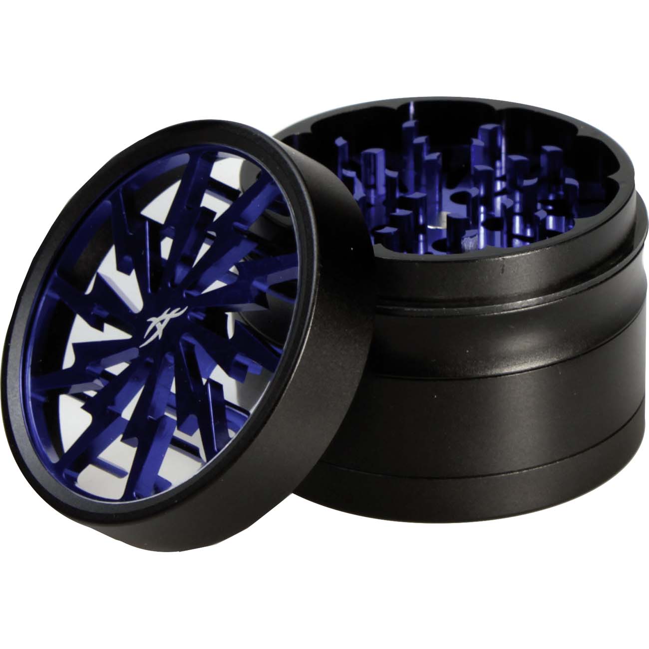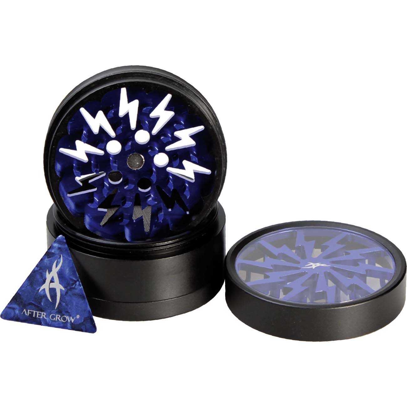 Thorinder After Grow™ Alu-Grinder mini 4part magnetic. The Thorinder™ premium grinder mini from After Grow for underway use. It comes in 4part with 50mm diameter. Easy to use cause of its ergonomic design. Thorinder™ grinders have premium quality processing, even in the smallest details. It has a magnetic lid with a blue print. Also the CNC mashined diamond shaped teeth are colored blue. The mesh size is 100µm. Delivered in an exclusive gift box with pollen scrapper.