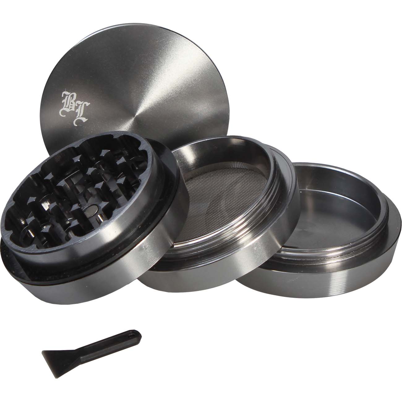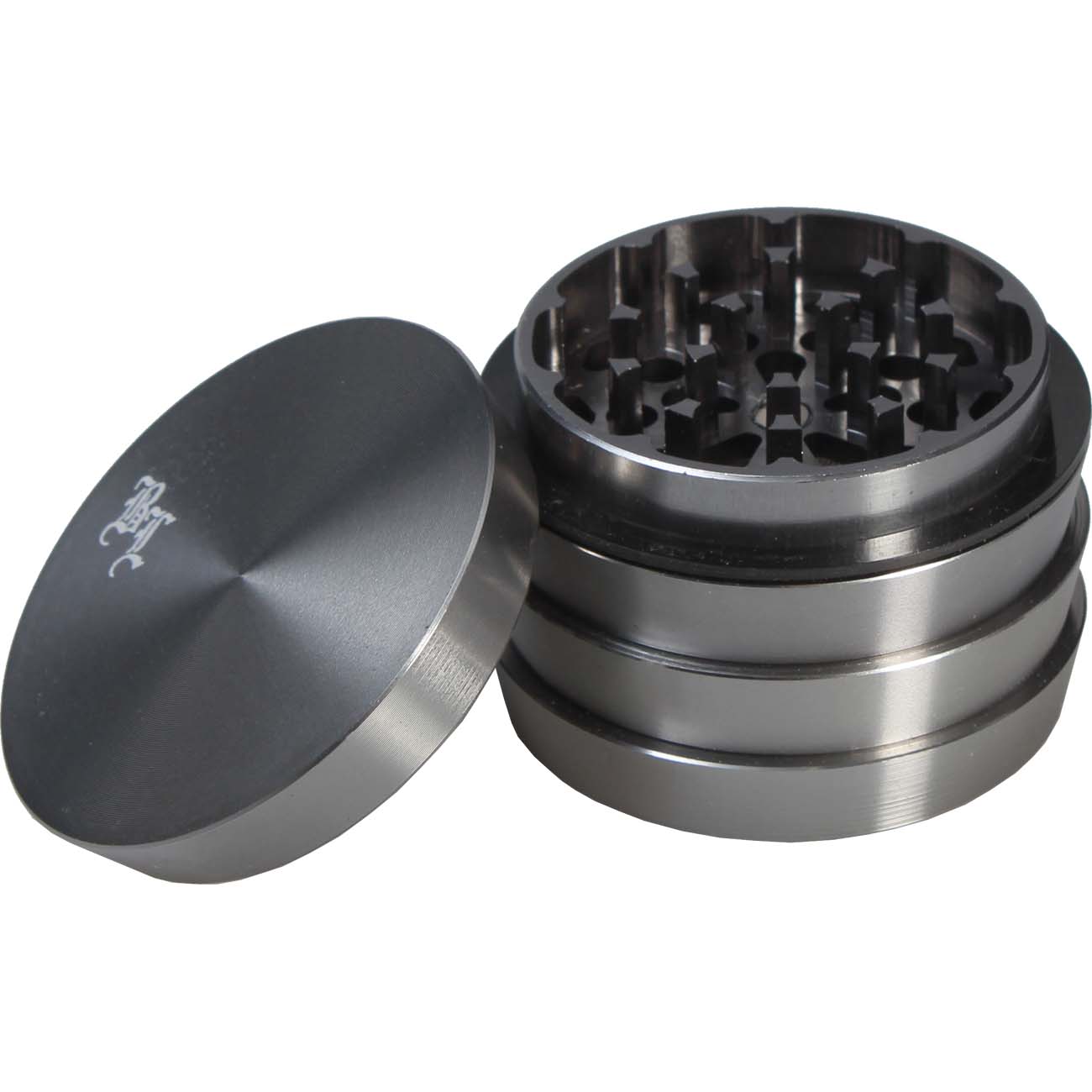 4-part designer stage Grinder made of aluminium with diamond shaped teeth and sieve. The lid is magnetic and lays on a sliding ring of nylon.