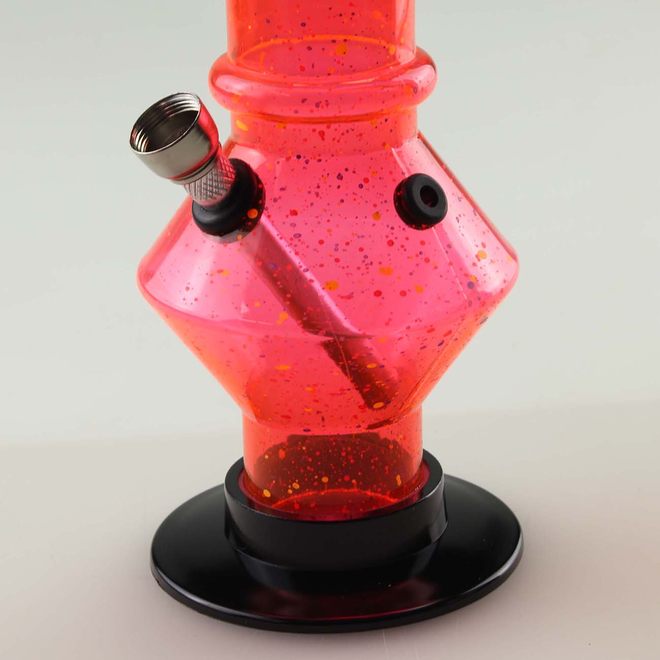 The light acrylic bong with its neon colours and the small speckles is quite gaudy! Practical for on the go and at home.