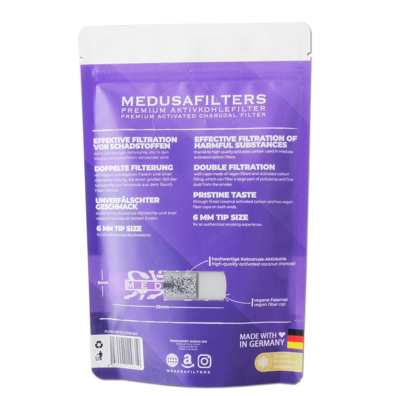 The components of the MEDUSAFILTERS are combined in the perfect ratio, provide a super pleasant smoking sensation with a filtered, purer taste. And convince even hardened opponents of activated charcoal.