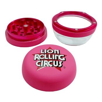 The crusher from LION ROLLING CIRCUS® reliable grind herbs and piece into the optimal state. They come in six different colours, each representing one of the circus' charismatic ensemble members: Edgar Allan (yellow), Ruby (emerald green), Sexy Sadie (pink), Mr Trampoline (orange), Tora Tora (purple) and Doublehead Silverfuck & Jellybelly (blue).