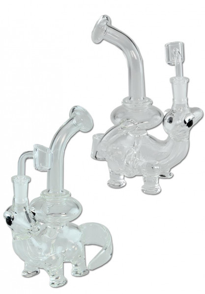This cute dino bubbler for concentrates like wax and oil works according to the recycler principle. The raised water flows back into the water chamber via an extra pipe and is enriched again and again with fresh oxygen.