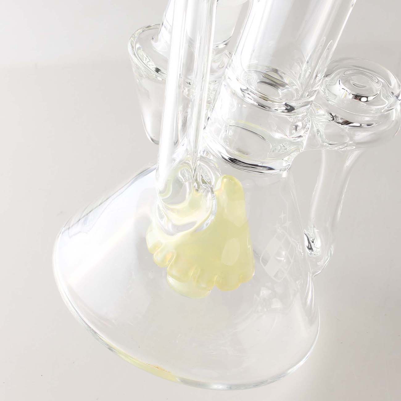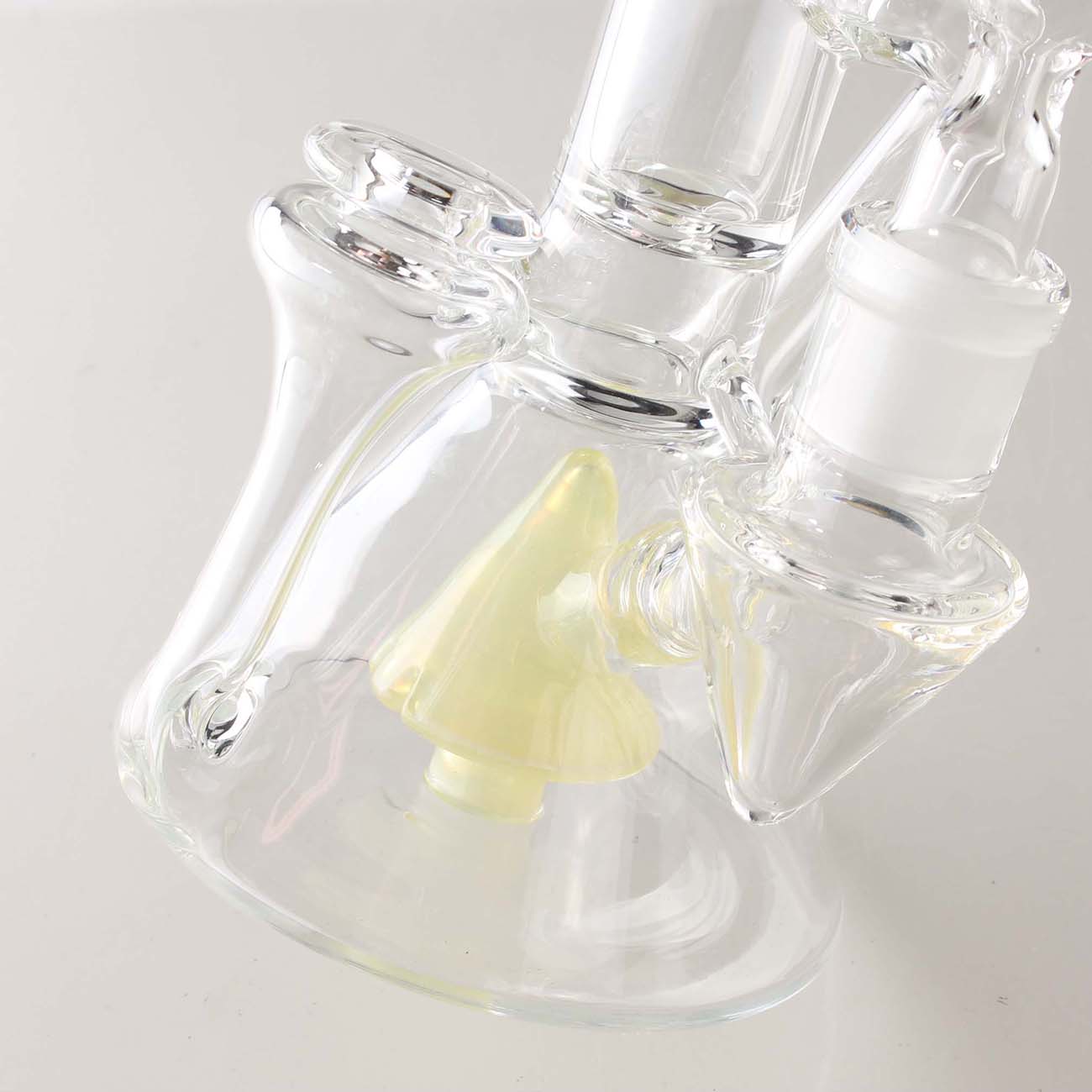 The cone percolator creates powerful turbulence in the water and air, cooling and filtering the smoke effectively. The highly precise recycler function draws the bong water up and returns it to the water chamber. Each time it flows back in, the water is enriched with fresh oxygen, i.e. it is recycled. At the same time, unwanted by-products of the smoke settle on the bong wall. As a result, the hits are very flavourful and aromatic.