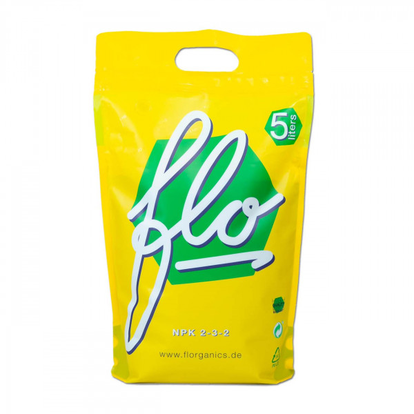 FLO enthält: 2% Stickstoff bewertet als Gesamtstickstoff, 3% Phosphat bewertet als Gesamt-P2O5, 2% Kali bewertet als Gesamt K2O. Mindestgehalt an organischer Substanz 60% (bezogen auf die Trockenmasse). Unter Verwendung von pflanzlichen Stoffen der Lebens-, Genuss- oder Futtermittelherstellung, Algen, Leonardit, tierischen Nebenprodukten (Kat. 3, VO (EG) 1069/2009: Fischmehl, Blutmehl, Fleischknochenmehl), 6% Fledermausguano, kohlensaurem Magnesiumkalk, kohlensaurem Kalk aus Meeresalgen, Epsomit, Gesteinsmehl (Basalt/ Diabasgestein), Tonmineralien, Palmasche, Pilzen (Trichoderma, Mykorrhiza) und Bakterien.