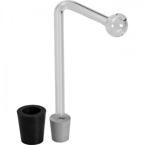 Oil Vaporizer Attachment SG 14 glass Bongs. This is glass bong attachment that can be used to vaporizer Cannabis and other essential oils. It can fit any glass bong that used the standard SG 14 Sure Ground friction fit. It has a 60ø bend in the flue and a hollow glass ball. In use, oil, wax or herbs are added to the bowl before it is heated from underneath. This produces a gentle evaporation process - similar to a vaporizer. Attention! Smokers that have a SG 19 glass bong can bridge the difference with Art. No. 17 09 03.