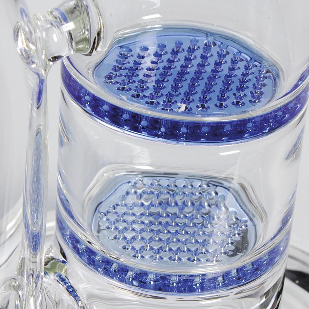Blaze Glass Mix und Match Bong Base with stable round foot. In the bottom are 2 diffusor discs with special holes for a lot of swirling. The attachment for the bowl is bi-stable. The base with silver Blaze Glass print has no kickhole. The bong can be built just the way you like it with the various other models in the MixundMatch series. All components with SG 45 fit.