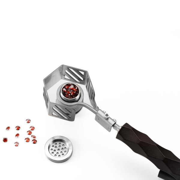The facet cut allows the rubies to move more evenly in the airflow and distribute the stored heat particularly effectively. The heat is also stored particularly well by the hard and very durable diamond-cut rubies, resulting in an exceptionally efficient and flavourful one-hit extraction.