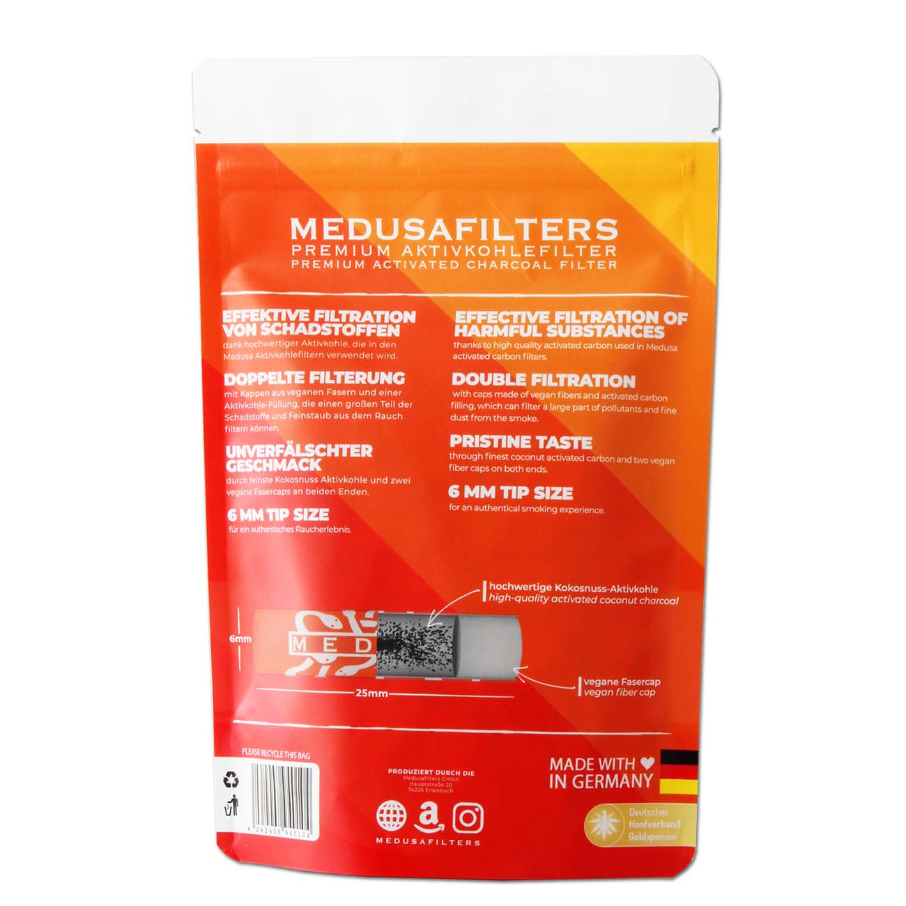 The components of the MEDUSAFILTERS are combined in the perfect ratio, provide a super pleasant smoking sensation with a filtered, purer taste. And convince even hardened opponents of activated charcoal.