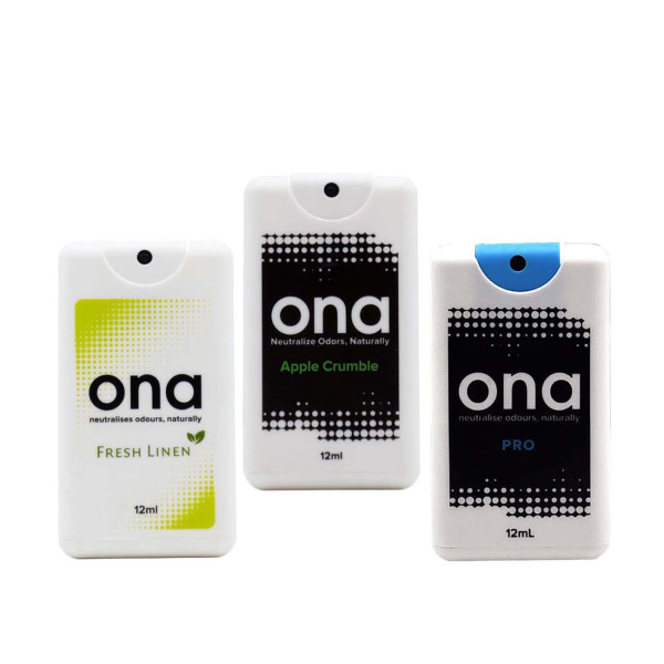 The spray from ona® can be used anywhere. The ona® spray card is small and easily fits into pockets or purses. Take it with you to use anytime unwanted odors suddenly pop-up – in the hotel room, office, car, booth or or or… One or two quick sprays and it smells fresh and pleasant again. Available in the popular fragrances: PRO, Fresh Linen and Apple Crumble. Made in Canada.