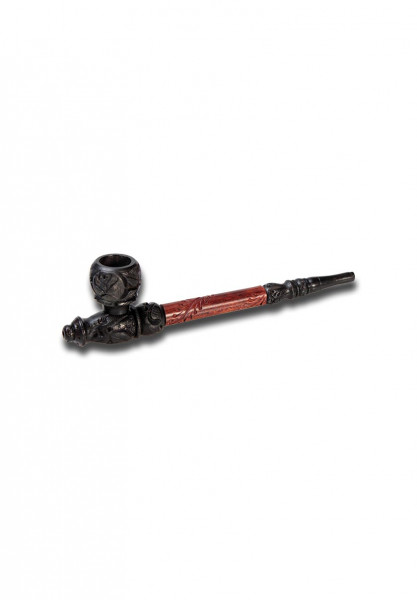 Artfully carved hand pipe made of shishamwood and ebony.