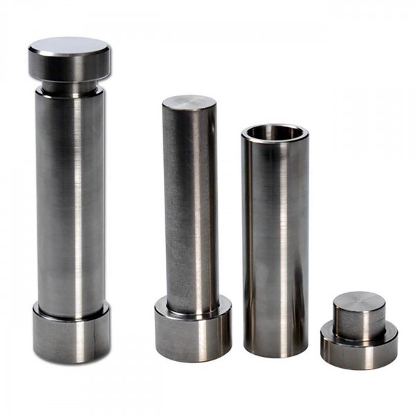 The very robust, three-part pollen press made of chromed steel has inside a heavy one-piece pin. Place the steel press with the short end on a stable surface, filling in material, inserting the pin and hitting the top end of the pin – done!