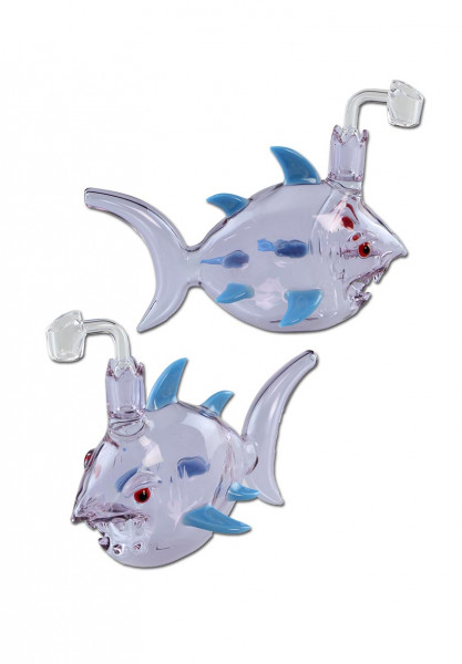 The mouthpiece is the caudal fin and the grind opening for the oil banger ends in a diffuser. This ensures proper bubbling in the inside of the fish which in turn leads to smoke cooling and filtering. The dab tuna rig is made from the best borosilicate glass, whose different colours shimmer enchantingly.