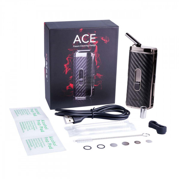 And now the best feature: With the slide button on the front of the vaporizer you can push up the heating chamber and empty it easily! The replaceable battery is also an advantage. The 'ACE' vaporizer set comes with a wide range of accessories.